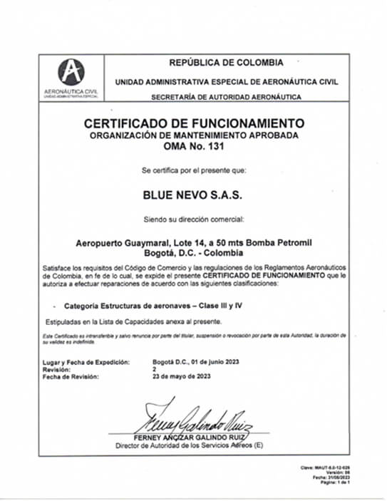 - Cumplimiento de normativas de la Aeronáutica Civil de Colombia.